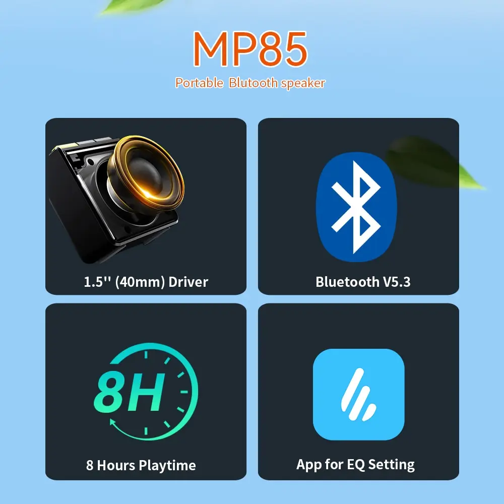 MP85 is equipped with a 1.5-inch (40mm) full-range driver with the total output power of 2.2w (RMS), which is specially tuned for vocals to make the voice clearer and more transparent.